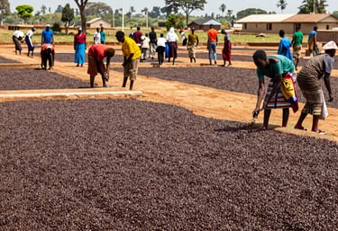We grow Coffea canephora, Uganda's world-renowned Robusta, across the fertile highlands of Mubende, Kyankwanzi, Kiboga, Mityana and Kassanda. Our beans are bold, full-bodied, and high in caffeine, making them ideal for espresso blends, instant coffee manufacturing, and specialty roasting.